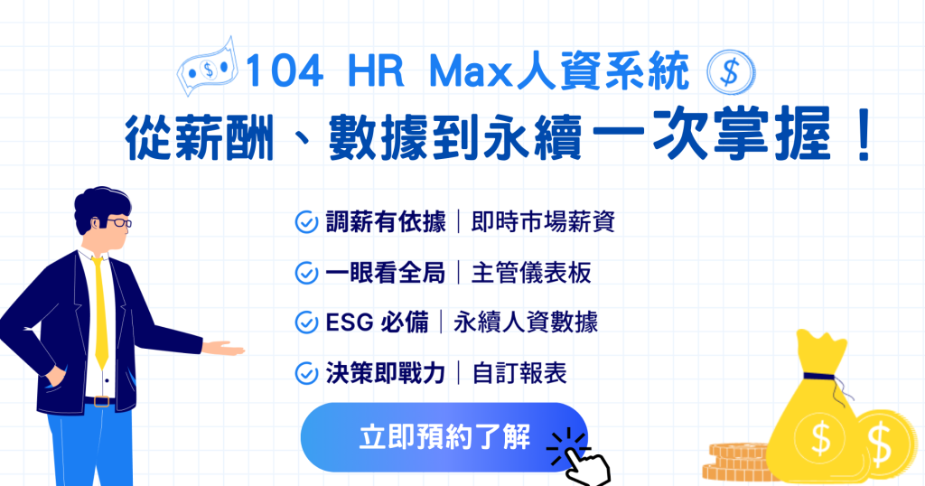 立即了解104 HR Max如何與薪酬平台、ESG模組、數據資料等智慧協作→https://104ha.com/1tOs8