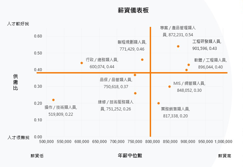 ▲科技業人才薪資儀表板。右上為徵才無慮區;左下為關鍵缺才區。(資料來源:2026科技業人才白皮書)