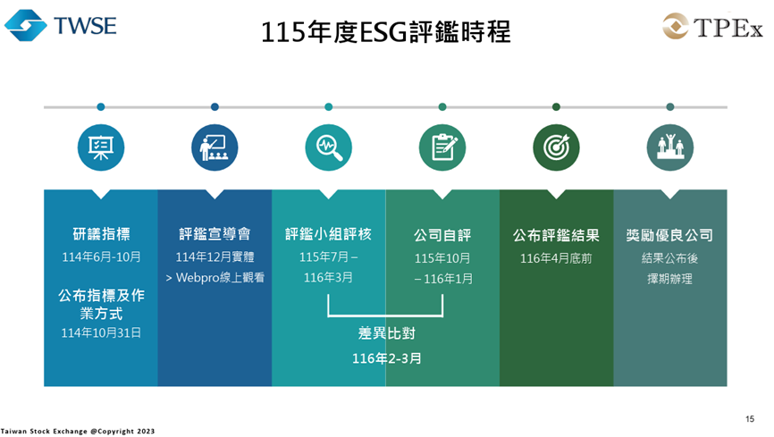 - 評鑑結果公布:116年4月底前,包含上市、上櫃級距及產業別級距。