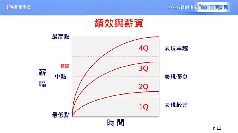 要確保績效制度有效,獎勵之間的差異化必須夠大。設計調薪矩陣時,應考量兩大面向:員工的績效表現與其薪資在薪幅中的位置(如1Q, 2Q, 3Q, 4Q)。對於績效卓越但薪資落點較低(例如在1Q)的員工,應給予較高的調薪幅度,以縮小與市場和內部公平的差距。