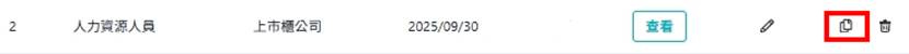 在實務操作效率上,建議HR應優先將每月10次的查詢配額運用在「關鍵職務」或「高流動性崗位」,避免資源浪費。為了讓分析過程更精簡,平台提供了貼心的「複製並編輯」功能(如下圖所示之「複製」圖示),您無需重新設定,只需一鍵複製既有紀錄即可快速微調職務條件或公司組合,讓您的薪酬決策既精準又充滿效率。