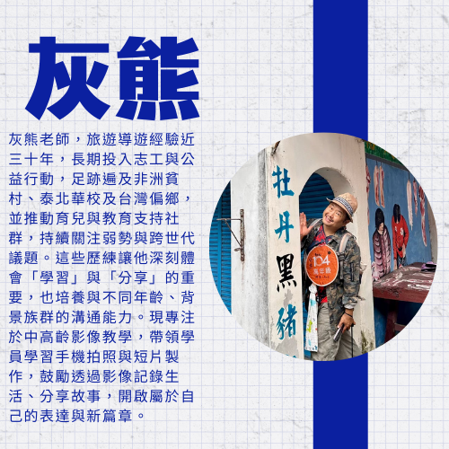 如今,灰熊老師的課程已經涵蓋手機拍照、短影片製作、AI 文字與繪圖應用,未來也計劃持續拓展更多旅遊應用主題。但無論科技如何變化,灰熊老師的理念始終如一:讓學員用簡單的方式,連結生活與數位世界。