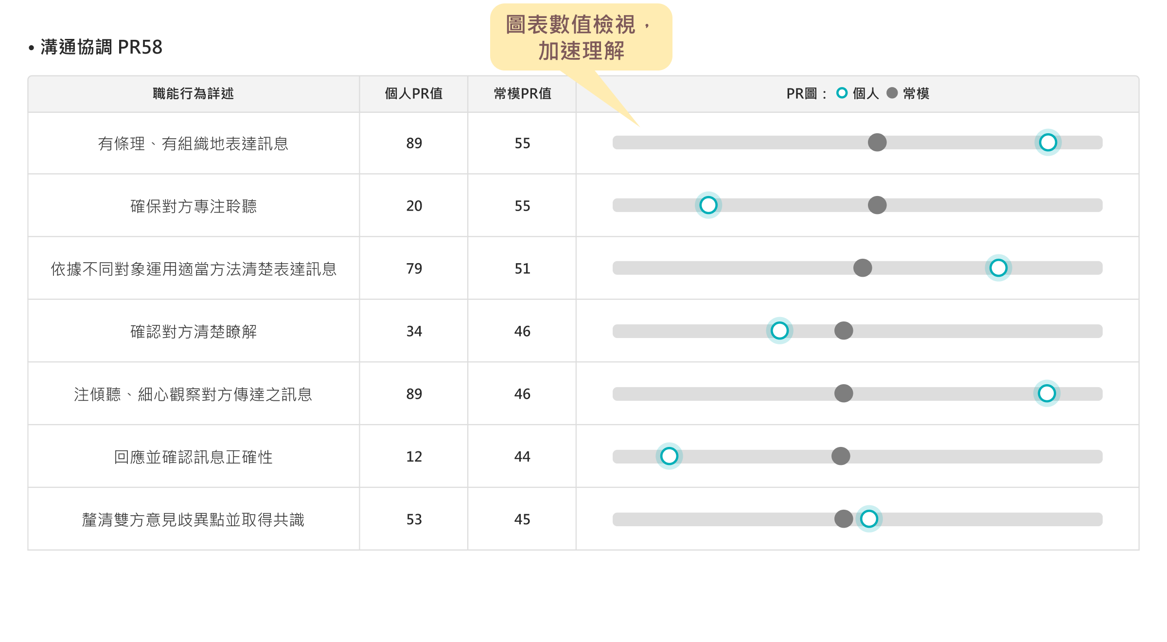 常模就像是一組「參考成績」,代表某個特定族群在測驗中的整體表現,例如人力資源人員常模、績優常模等。當我們把個人的測驗分數拿來跟這個常模比較時,就能看出他在這群人當中的相對位置,換句話說,就是知道自己表現得是高於平均、還是還有進步空間。