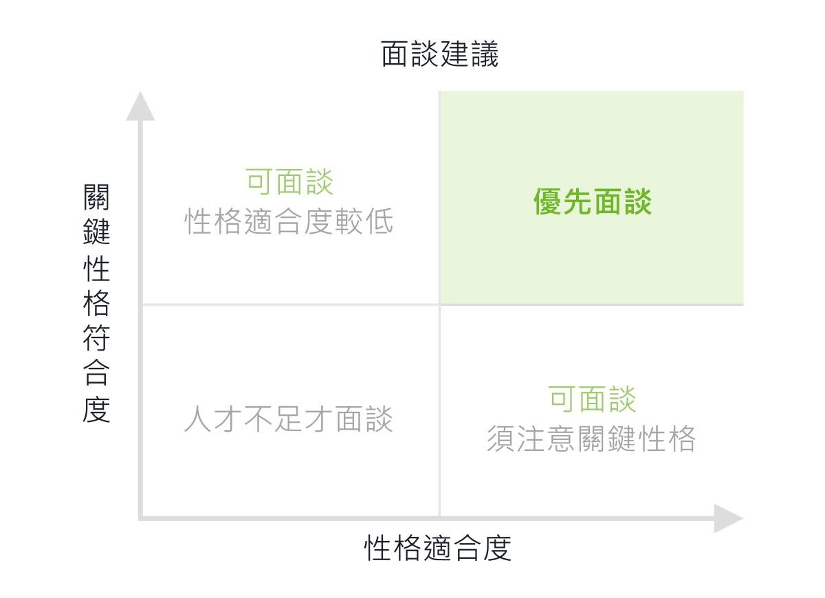 104性格量表提供人選面談順序建議+專屬面談題目與指南,協助人資和用人主管在選才時更快速!