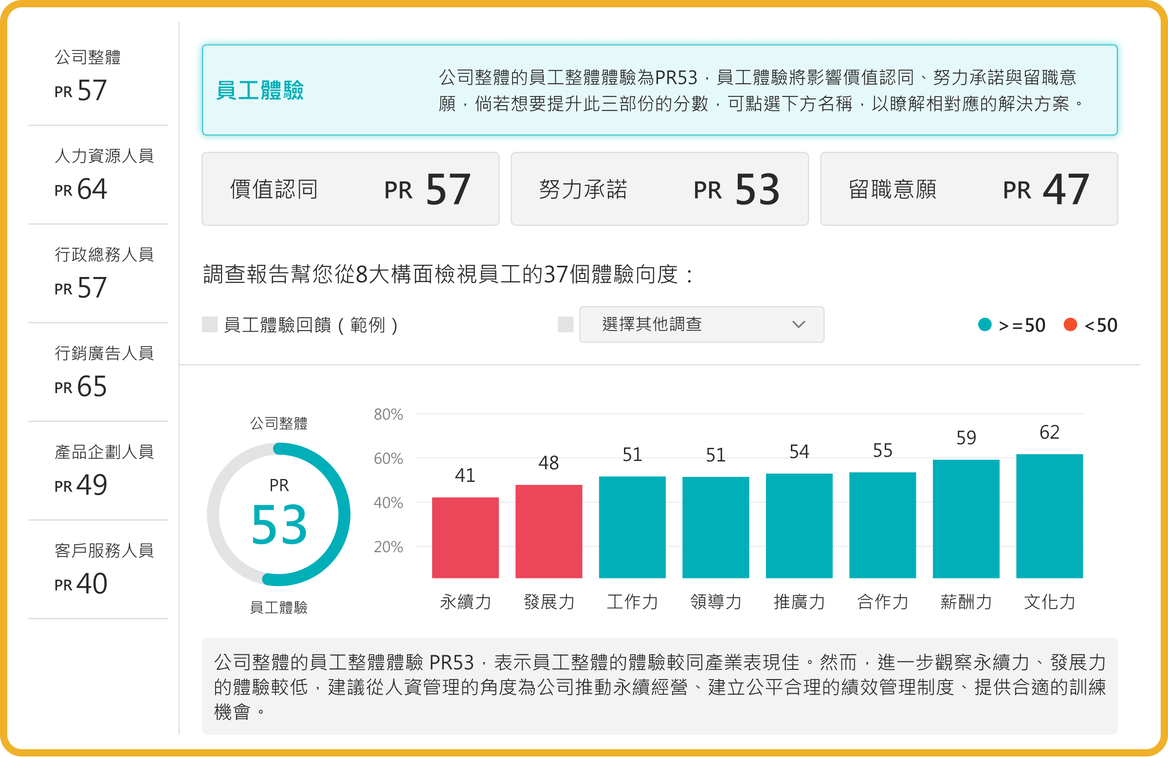 衡量企業文化整體氛圍的指標,反映公司對人與價值的態度。